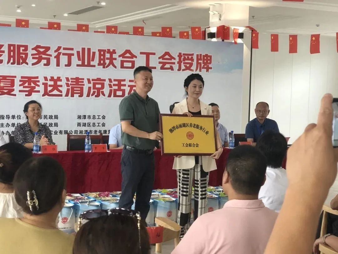雨湖區(qū)養(yǎng)老服務行業(yè)聯合工會舉行授牌儀式,華遠康養(yǎng)中心法人譚燦任工會主席