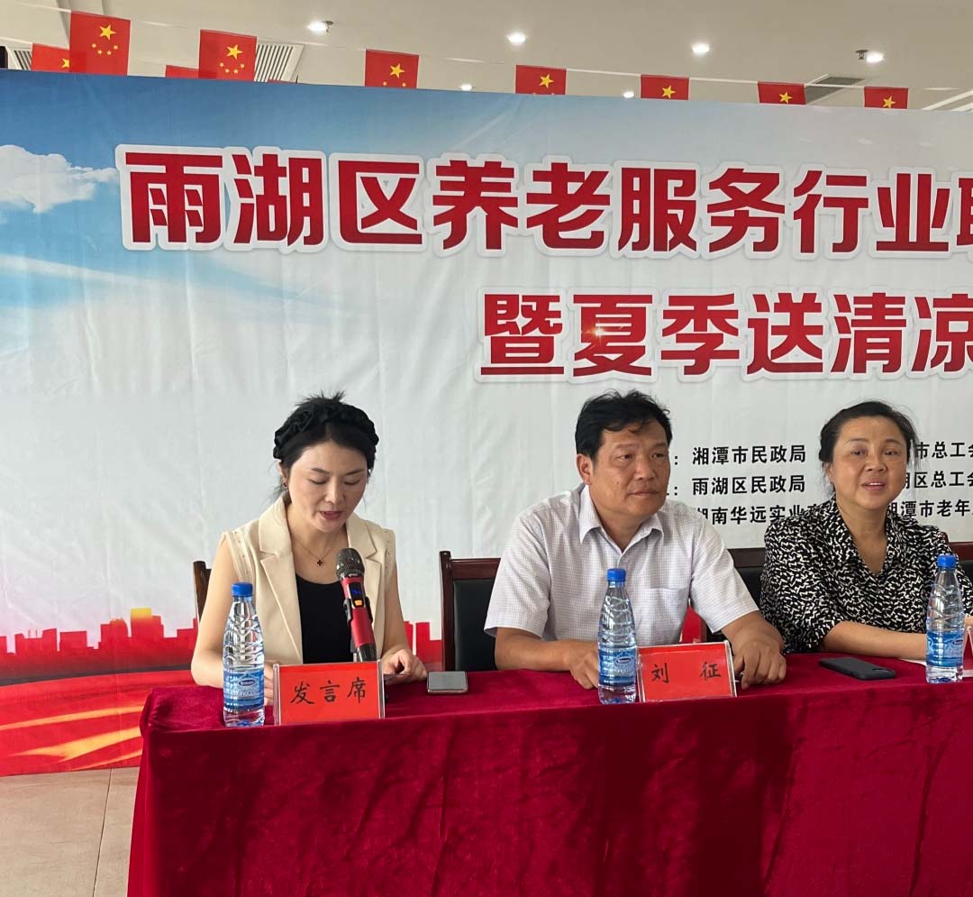 8月23日,雨湖區(qū)養(yǎng)老服務行業(yè)聯合工會授牌儀式暨夏季送清涼活動在我院舉行。區(qū)總工會黨組書記、常務副主席劉征,人大常委會副主任、區(qū)總工會主席譚聯,市總工會黨組成員、副主席羅軍,湘潭市民政局黨委委員、副局長韓賢海,雨湖區(qū)委副書記蔣文武,市工會組織部部長劉志勇,以及來自雨湖區(qū)各養(yǎng)老機構的負責人代表參會,雨湖區(qū)民政局黨組書記、局長干建暉主持會議,華遠康養(yǎng)中心法人譚燦任首屆工會主席。